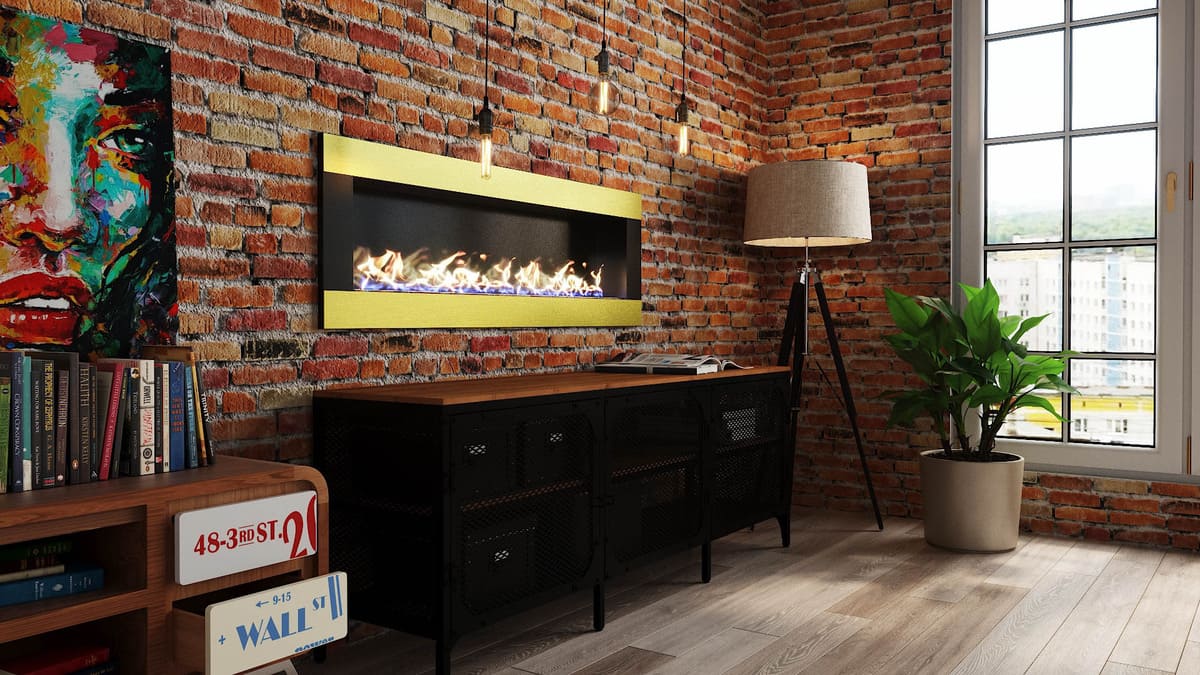 Биокамин черного с золотым цвета, который прекрасно подойдет как встраиваемый вариант для украшения вашего дома.